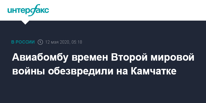 Москва. 12 мая. INTERFAX.RU - На Камчатке саперы Тихоокеанского флота (ТОФ) обезвредили авиабомбу времен Второй мировой войны, сообщает во вторник пресс-служба ТОФ.