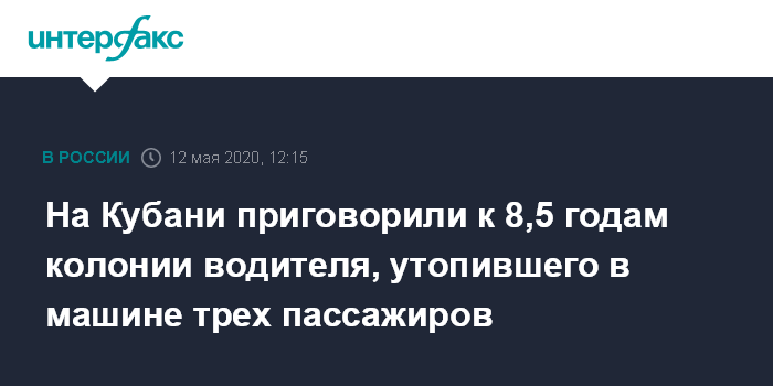 На Кубани приговорили к 8,5 годам колонии водителя, утопившего в машине трех пассажиров