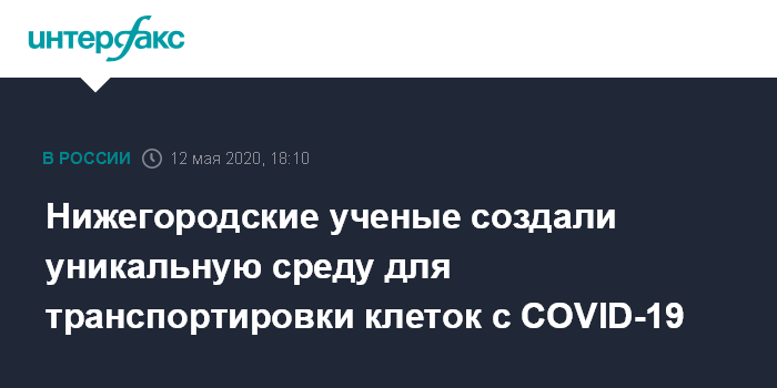 Москва. 12 мая. INTERFAX.RU - Среда для транспортировки вирусов, в том числе и COVID-19, разработана на базе инжинирингового центра Нижегородского государственного университета имени Лобачевского (ННГУ). Об этом сообщил агентству "Интерфакс" проректор этого вуза по инновациям Михаил Ширяев во вторник.