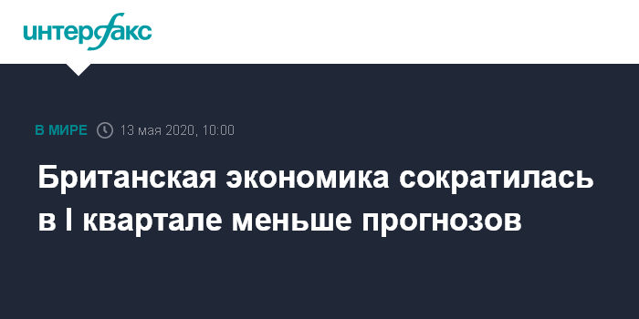 Москва. 13 мая. INTERFAX.RU - В I квартале 2020 года британская экономика сократилась на 2% к предыдущему кварталу, свидетельствуют предварительные данные Национального статистического управления (ONS). Это максимальное падение за 11 лет, вызванное карантинными мерами в условиях пандемии коронвируса.