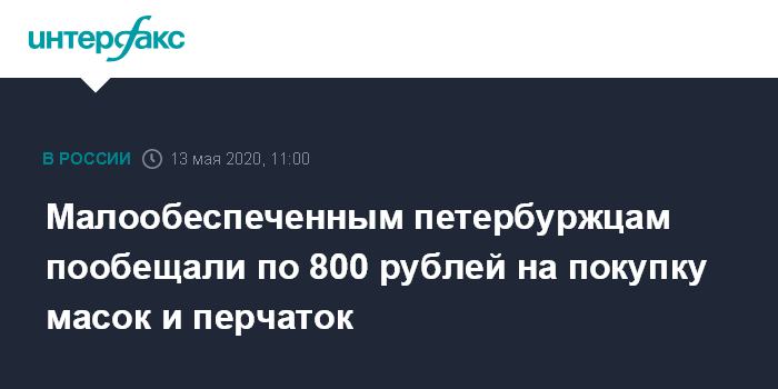 Малообеспеченным петербуржцам пообещали по 800 рублей на покупку масок и перчаток