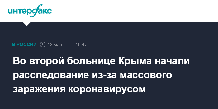 Москва. 13 мая. INTERFAX.RU - Более двух десятков случаев заражения новым коронавирусом выявлено за сутки в больнице города Саки на западе Крыма, сообщил глава республики Сергей Аксенов.