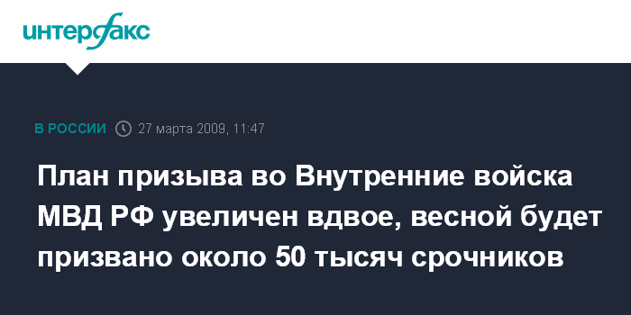 План призыва во Внутренние войска МВД РФ увеличен вдвое, весной будет призвано около 50 тысяч срочников