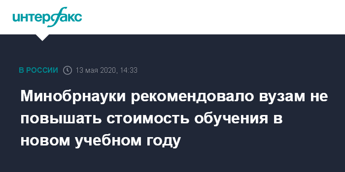 Москва. 13 мая. INTERFAX.RU - Министерство науки и высшего образования РФ рекомендовало вузам не повышать стоимость обучения в наступающем учебном году из-за особенностей дистанционного образования в связи с коронавирусом, рассказал глава ведомства Валерий Фальков.