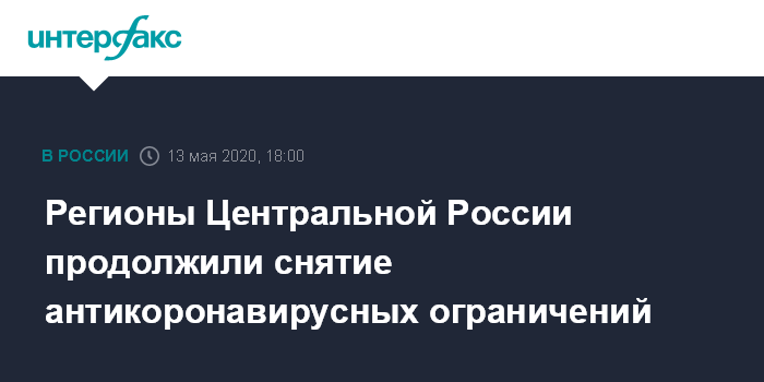 Москва. 13 мая. INTERFAX.RU - Власти регионов Центральной России постепенно отменяют ограничительные меры, введенные из-за распространения коронавируса.
