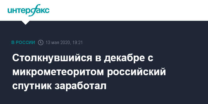 Столкнувшийся в декабре с микрометеоритом российский спутник заработал