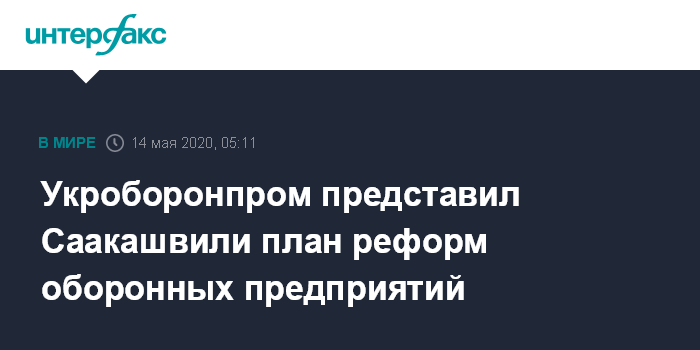 Москва. 14 мая. INTERFAX.RU - Руководство государственного концерна "Укроборонпром" представило планы реформы оборонных предприятий концерна председателю Исполнительного комитета Национального совета реформы при президенте Украины Михаилу Саакашвили, сообщила пресс-служба "Укроборонпрома".