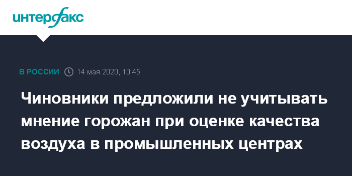 Речь идет о корректировке паспорта федерального проекта "Чистый воздух". Росприроднадзор предложил исключить из него показатель "Доля граждан, удовлетворенных качеством атмосферного воздуха в крупных промышленных центрах".