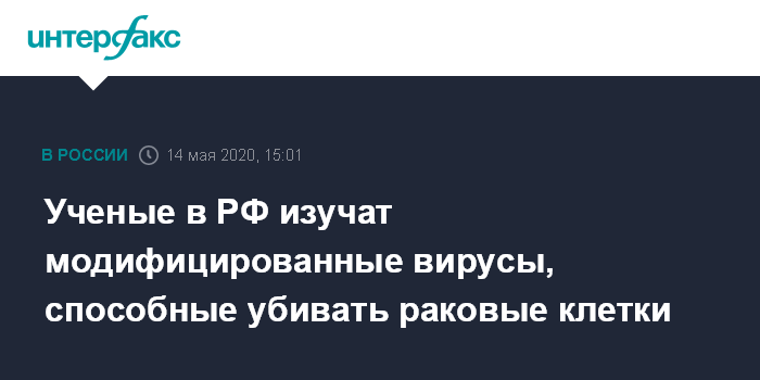 Москва. 14 мая. INTERFAX.RU - Геномный центр, созданный на базе Института молекулярной биологии РАН имени Энгельгардта, подготовил для доклинических исследований "уникальные штаммы" модифицированных вирусов, способных убивать клетки рака мозга и молочной железы, заявила вице-премьер РФ Татьяна Голикова.