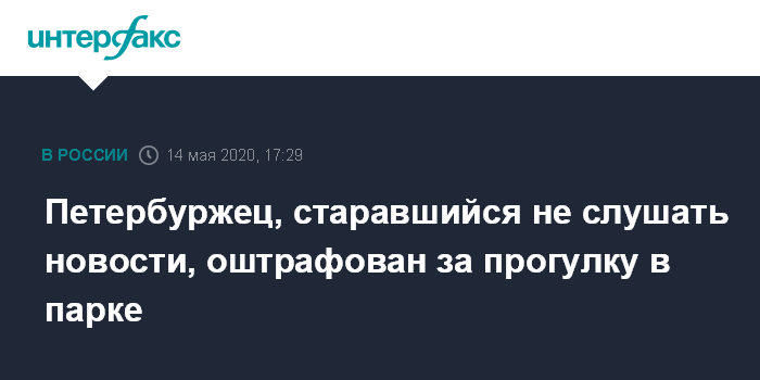 Петербуржец, старавшийся не слушать новости, оштрафован за прогулку в парке
