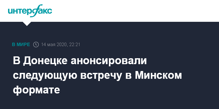 Москва. 14 мая. INTERFAX.RU - Следующая встреча контактной группы в Минском формате состоится в среду, 27 мая, заявили в четверг в МИД самопровозглашенной Донецкой народной республики.