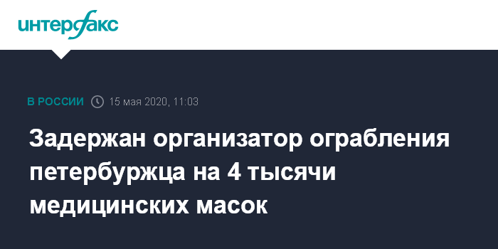 Как сообщалось, 10 апреля 24-летний безработный петербуржец, разместивший в соцсети объявление о продаже медицинских масок, договорился о встрече с покупателем. Однако на встречу пришли трое неизвестных, которые отобрали у него 4 тыс. масок и скрылись.