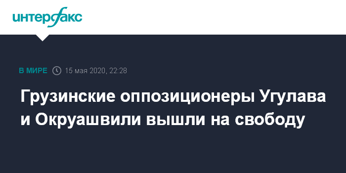 Москва. 15 мая. INTERFAX.RU - Бывший мэр Тбилиси Гиги Угулава и экс-министр обороны Грузии Ираклий Окруашвили в пятницу вечером освобождены из заключения на основании указа президента Саломе Зурабишвили об их помиловании.