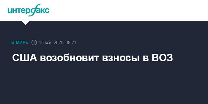 Соединенные Штаты "согласятся платить столько же, сколько составляют взносы Китая" сообщает Fox News со ссылкой на письмо генеральному директору ВОЗ Тедросу Адханом Гебрейесусу.