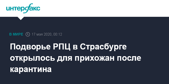 "Храм открыл свои двери, но пока только для индивидуальной молитвы. Собрания, в том числе и религиозные, во Франции пока не разрешены. Верующие снова могут помолиться в храме, поставить свечки, подать записки о живых и усопших, посетить нашу лавку", - сообщил "Интерфаксу" настоятель подворья Русской церкви в Страсбурге архимандрит Филипп (Рябых).