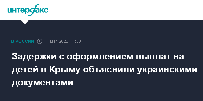 Москва. 17 мая. INTERFAX.RU - Часть жителей Крыма не могут оформить в электронном виде заявки для получения выплат на детей из-за украинских свидетельств о рождении, сообщила вице-премьер республики Елена Романовская.