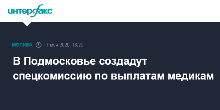 Москва. 17 мая. INTERFAX.RU - В Подмосковье создадут специальную комиссию, в которую можно будет направить вопросы, связанные с выплатами врачам, работающим с больными COVID-19, сообщил в воскресенье губернатор Московской области Андрей Воробьев.