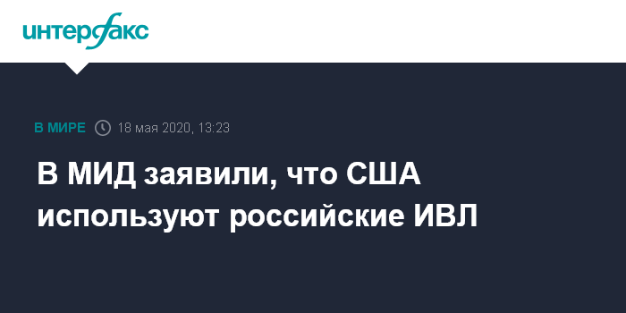 Москва. 18 мая. INTERFAX.RU - Поставленные в США российские ИВЛ используются для лечения заболевших, сообщил замглавы МИД РФ Сергей Рябков на лекции в МГИМО.