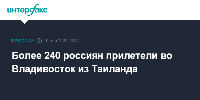 Москва. 19 мая. INTERFAX.RU - Самолет из Бангкока с россиянами на борту прибыл во Владивосток, свидетельствуют данные онлайн-табло аэропорта.