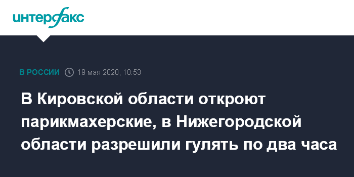 В Кировской области откроют парикмахерские, в Нижегородской области разрешили гулять по два часа