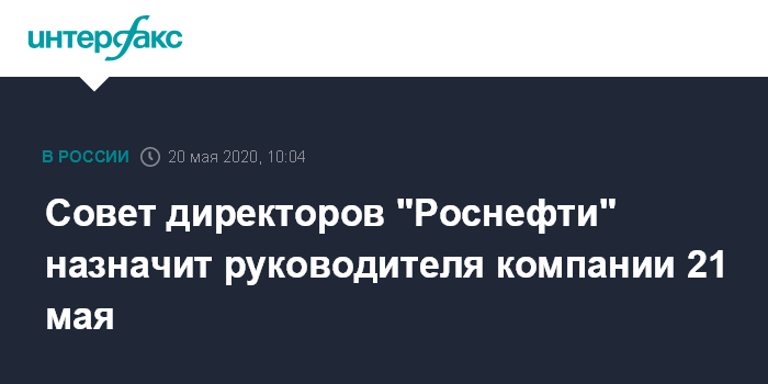 Совет директоров "Роснефти" назначит руководителя компании 21 мая