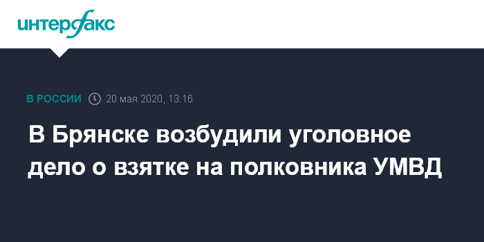 Москва. 20 мая. INTERFAX.RU - Уголовное дело возбуждено в отношении бывшего исполняющего обязанности начальника следственного управления УМВД России по Брянской области по подозрению во взяточничестве, сообщает пресс-служба СУ СКР по региону. По данным СМИ, это полковник юстиции Сергей Артемов.