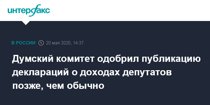 Москва. 20 мая. INTERFAX.RU - Комитет Госдумы по контролю и регламенту согласился с тем, что обычный срок публикации деклараций о доходах депутатов может меняться.