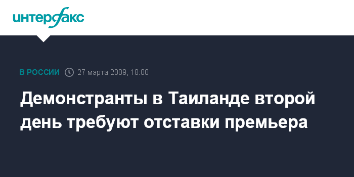 Бангкок. 27 марта. INTERFAX.RU - Премьер-министр Таиланда Абхисит Вечачива отказался в пятницу подать в отставку, которой от него требуют тысячи демонстрантов, второй день подряд осаждающие здание правительства в Бангкоке, сообщает агентство ЭФЭ.