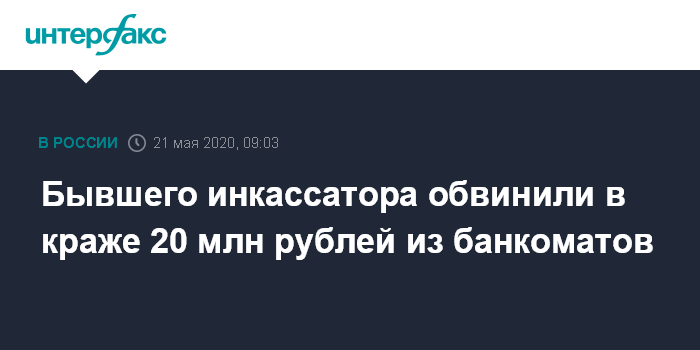 Москва. 21 мая. INTERFAX.RU - Полиция в Пензе предъявила обвинение в краже 20 млн рублей из двух банкоматов 39-летнему горожанину, который ранее работал инкассатором. Об этом сообщила пресс-служба МВД.