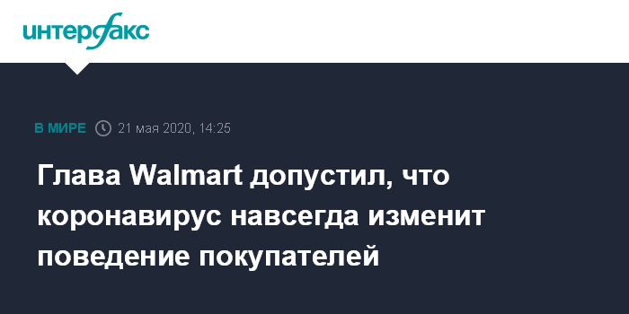 Москва. 21 мая. INTERFAX.RU - Многие изменения в покупательском поведении, вызванные пандемией, включая взлет онлайн-продаж, могут оказаться долговременными, считает глава крупнейшей в США компании розничной торговли Walmart Inc. Джон Фернер.