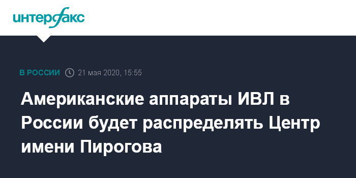 Ранее СМИ сообщили, что США безвозмездно передадут свои ИВЛ центру имени Пирогова в Москве. Источник "Интерфакса" в медицинских кругах сообщил, что аппараты будут распределены по различным медучреждениям страны.
