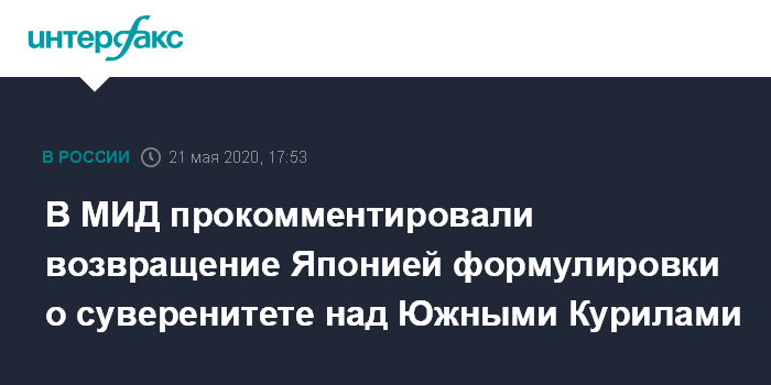 Ранее агентство Kyodo сообщило, что в ежегодном японском докладе о внешней политике снова появилась формулировка о том, что четыре контролируемых Россией острова у восточного Хоккайдо принадлежат Японии. В докладе говорится, что на северные территории (острова Кунашир, Итуруп, Шикотан и Хабомаи) распространяется суверенитет Японии, пишет Japan Times.