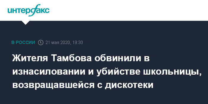 Москва. 21 мая. INTERFAX.RU - Следователи в Тамбовской области предъявили обвинение местному жителю в насилии и убийстве 13-летней школьницы, сообщается на сайте СУ СКР по региону.