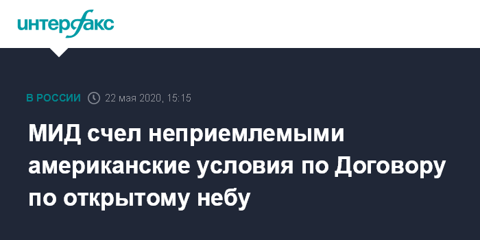 Москва. 22 мая. INTERFAX.RU - Выдвинутые США условия по Договору по открытому небу (ДОН) категорически неприемлемы, заявил замглавы МИД РФ Сергей Рябков.