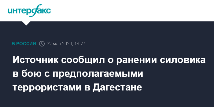 Москва. 22 мая. INTERFAX.RU - Силовик получил ранение в бою с предполагаемыми боевиками в лесу у сел Муцалаул и Гоксув в Хасавюртовском районе Дагестана, сообщил информированный источник "Интерфакса". Раненного увезли в больницу, бой продолжается.