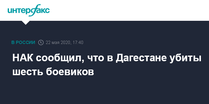 Москва. 22 мая. INTERFAX.RU - За время спецоперации в Хасавюртовском районе Дагестана убиты шесть подозреваемых боевиков, сообщили в информационном центре Национального антитеррористического комитета (НАК).
