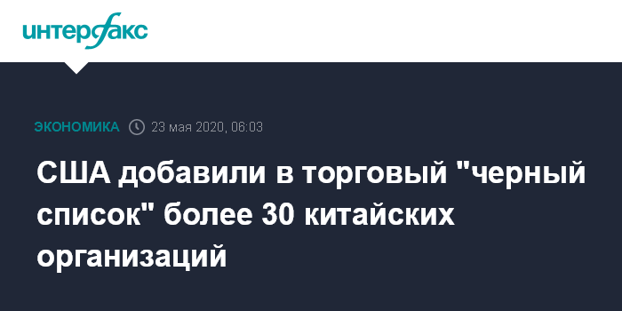 Москва. 23 мая. INTERFAX.RU - Министерство торговли США сообщило, что внесло в "черный список" 33 китайские компании и организации, которые, по мнению американских властей, имеют отношение к ущемлению прав мусульманского населения в Синьцзян-Уйгурском автономном районе КНР или же угрожают национальной безопасности США.