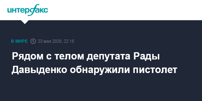 Москва. 23 мая. INTERFAX.RU - Рядом с телом народного депутата Верховной Рады Украины Валерия Давыденко найден пистолет, сообщается на сайте офиса генпрокурора.