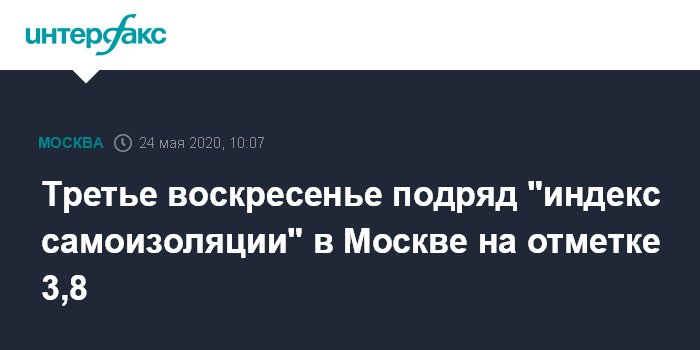 При этом отмечалось, что в оба предыдущих воскресных дня, 10 и 17 мая, утренний уровень самоизоляции в Москве также составлял 3,8.