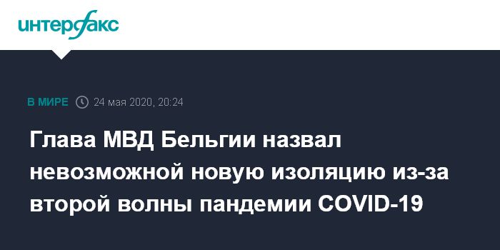 Москва. 24 мая. INTERFAX.RU - Министр внутренних дел Бельгии Питер де Крем полагает, что даже при возможном возобновлении нарастающего распространения коронавируса в стране повторения режима изоляции не будет.