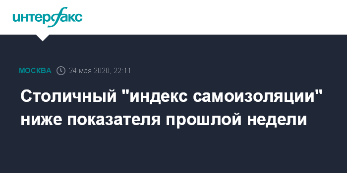 Москва. 24 мая. INTERFAX.RU - Число жителей Москвы, которые придерживаются требований режима самоизоляции и остаются дома в воскресенье вечером, ниже уровня прошлого воскресенья, следует из статистики от компании "Яндекс".