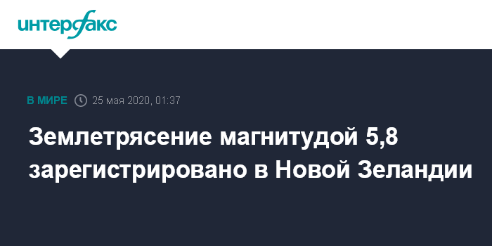 Землетрясение магнитудой 5,8 зарегистрировано в Новой Зеландии