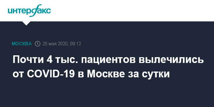 Почти 4 тыс. пациентов вылечились от COVID-19 в Москве за сутки