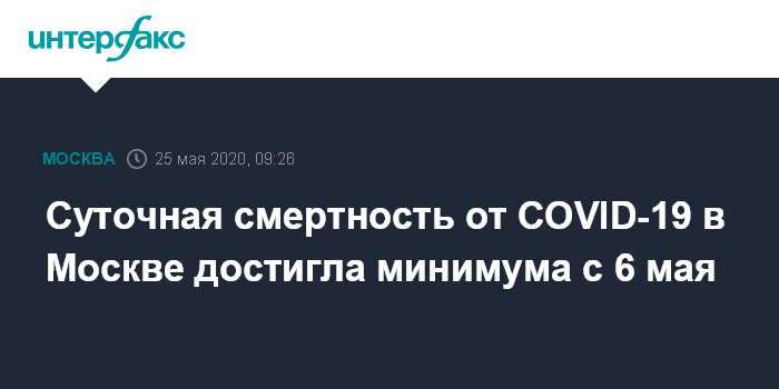 Суточная смертность от COVID-19 в Москве достигла минимума с 6 мая