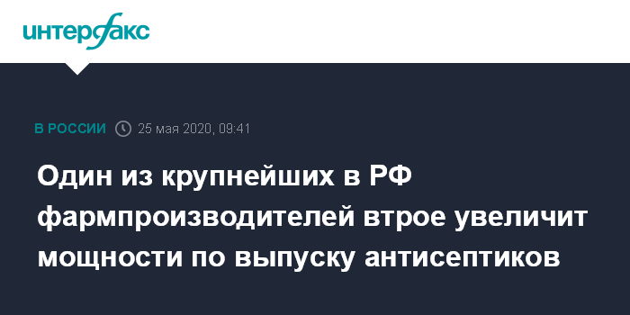 Один из крупнейших в РФ фармпроизводителей втрое увеличит мощности по выпуску антисептиков