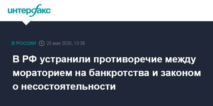 В РФ устранили противоречие между мораторием на банкротства и законом о несостоятельности