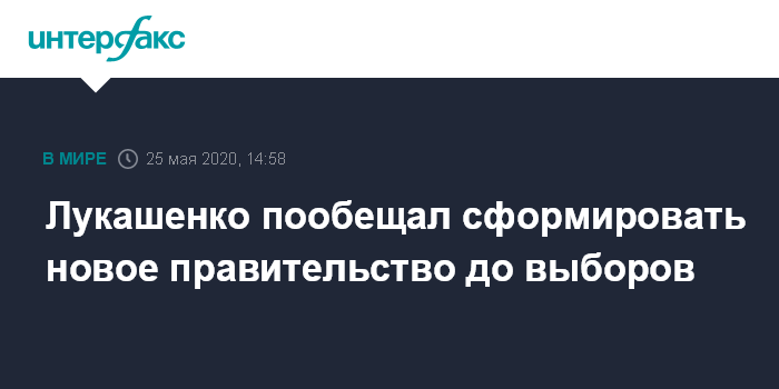 Москва. 25 мая. INTERFAX.RU - Президент Белоруссии Александр Лукашенко объявил о планах сформировать новый состав правительства страны до президентских выборов, которые состоятся 9 августа этого года.