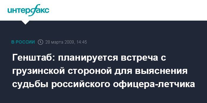 Генштаб: планируется встреча с грузинской стороной для выяснения судьбы российского офицера-летчика