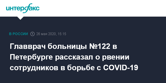 Главврач больницы №122 в Петербурге рассказал о рвении сотрудников в борьбе с COVID-19