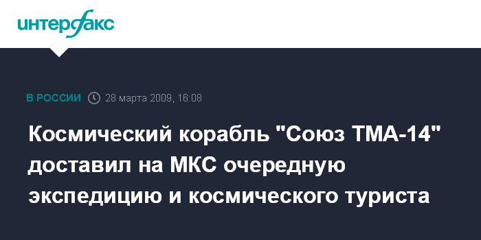 Космический корабль "Союз ТМА-14" доставил на МКС очередную экспедицию и космического туриста